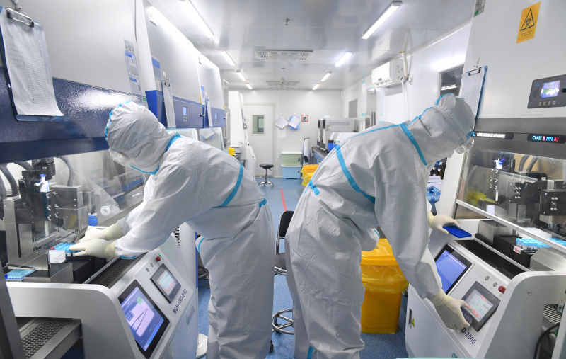 Des membres du personnel médical effectuent des tests d'acide nucléique dans l'arrondissement de Shunyi à Beijing, capitale de la Chine, le 3 janvier 2021