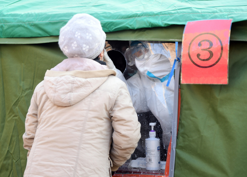 Un membre du personnel médical dans un site de dépistage de l'arrondissement de Shunyi à Beijing, capitale de la Chine, le 3 janvier 2021