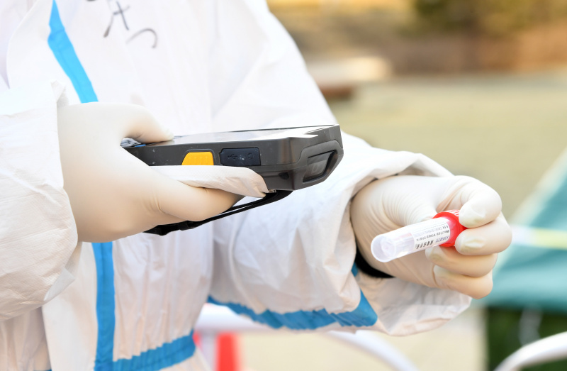 Un membre du personnel médical enregistre les informations personnelles dans un site de dépistage de l'arrondissement de Shunyi à Beijing, capitale de la Chine, le 3 janvier 2021