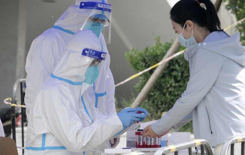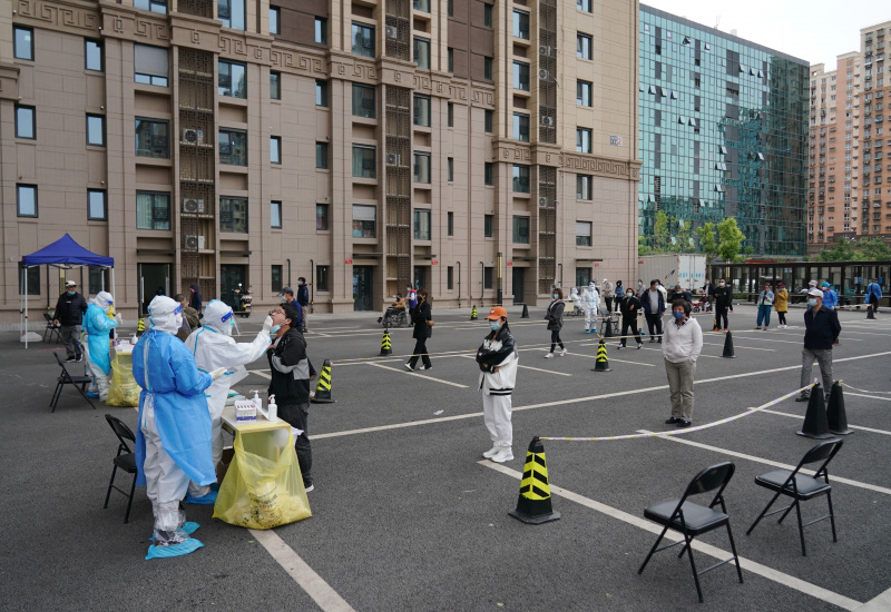 Des habitants font la queue pour des tests d'acide nucléique dans l'arrondissement de Chaoyang, à Beijing, capitale chinoise, le 7 mai 2022