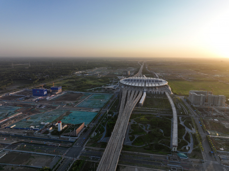 Photo aérienne de la gare de Xiong'an, dans la nouvelle zone de Xiong'an, dans la province chinoise du Hebei (nord), le 2 juin 2023