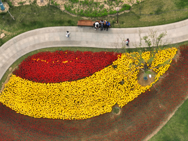 Photo aérienne du parc de Yuerong, dans la Nouvelle Zone de Xiong'an, dans la province chinoise du Hebei (nord), le 25 avril 2022. - Photo : Xing Guang