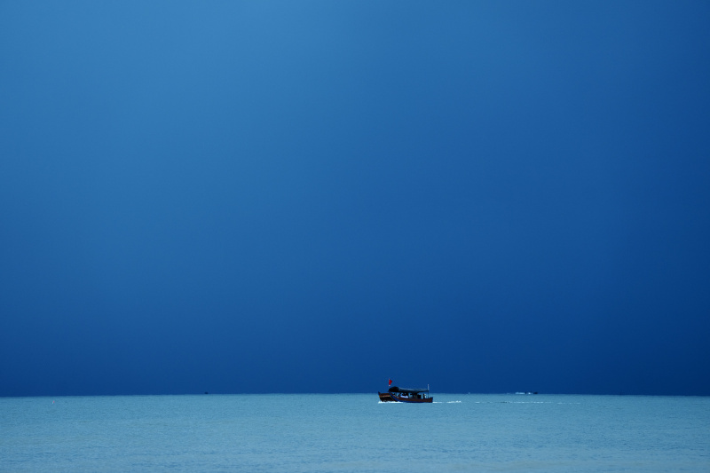 Un bateau de pêche en mer au large de la plage de Jintan à Dongxing, dans la région autonome Zhuang du Guangxi, dans le sud de la Chine, le 15 août 2023