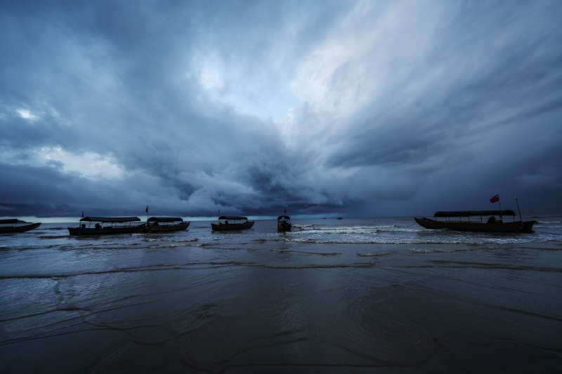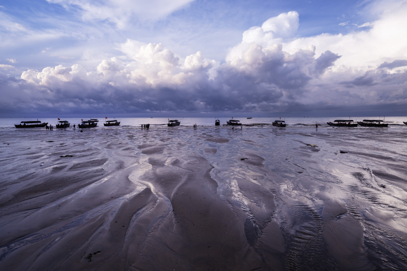Photo prise au petit matin le 15 août 2023 de la plage de Jintan à Dongxing, dans la région autonome Zhuang du Guangxi, dans le sud de la Chine